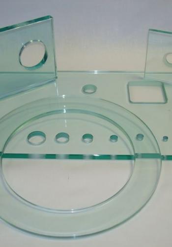 • Резка стекла. Изготовить деталь нужной формы на станке можно за считанные секунды. Причем речь идет не только о простых квадратах и прямоугольниках, но и о деталях сложной формы;